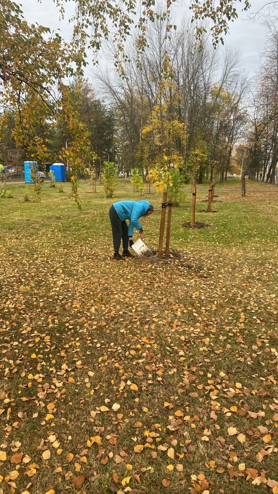 Два раза в неделю они заботливо проливают молодые саженцы, поэтому наши с вами деревья обязательно приживутся и дружно пойдут в рост.