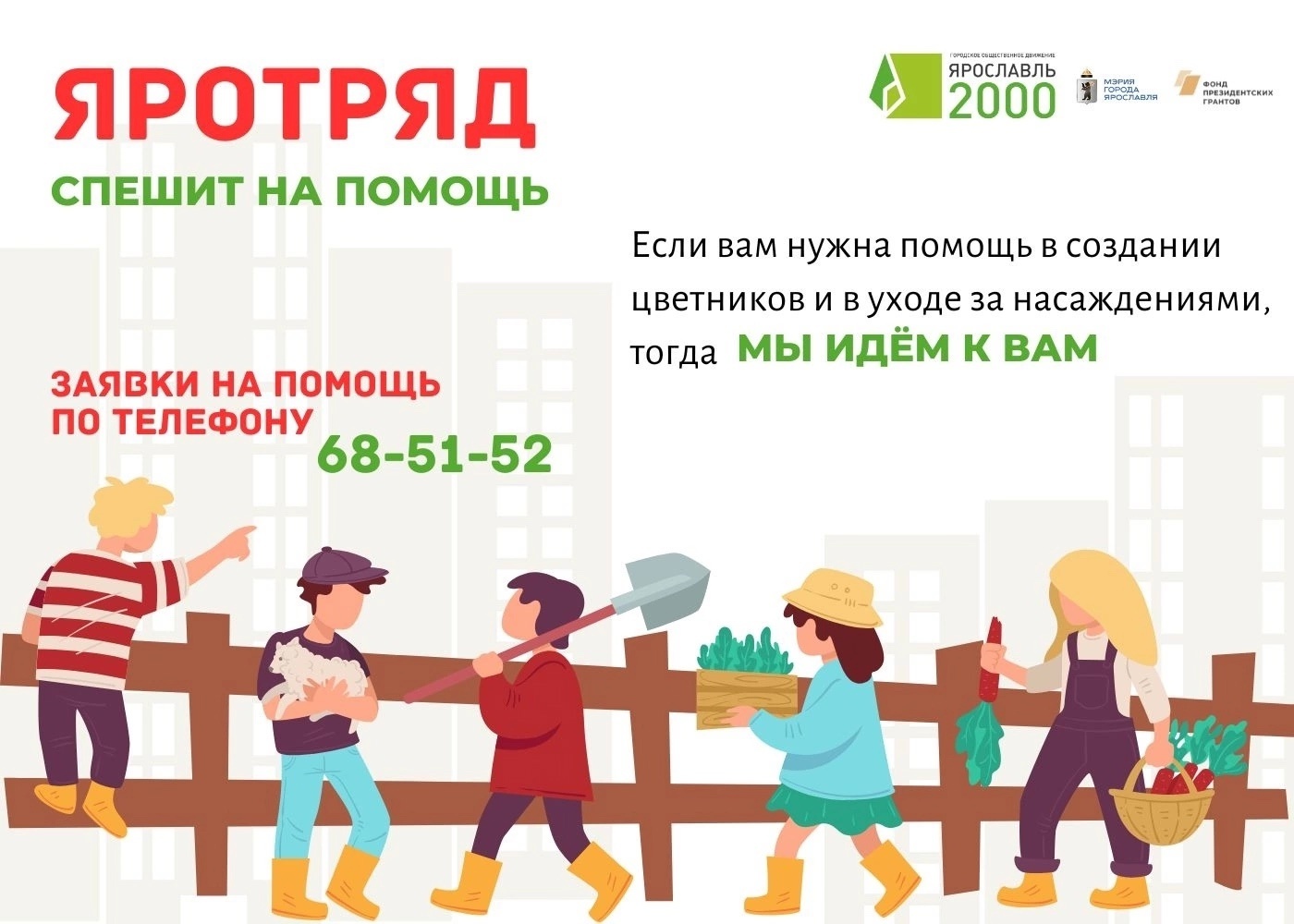 С 2018 года "Ярославль 2000" и Молодёжный центр трудоустраивают подростков на каникулы. Лето впереди — успеем сделать много добра! Нужна помощь? Звоните: 8 (4852) 68-51-52.